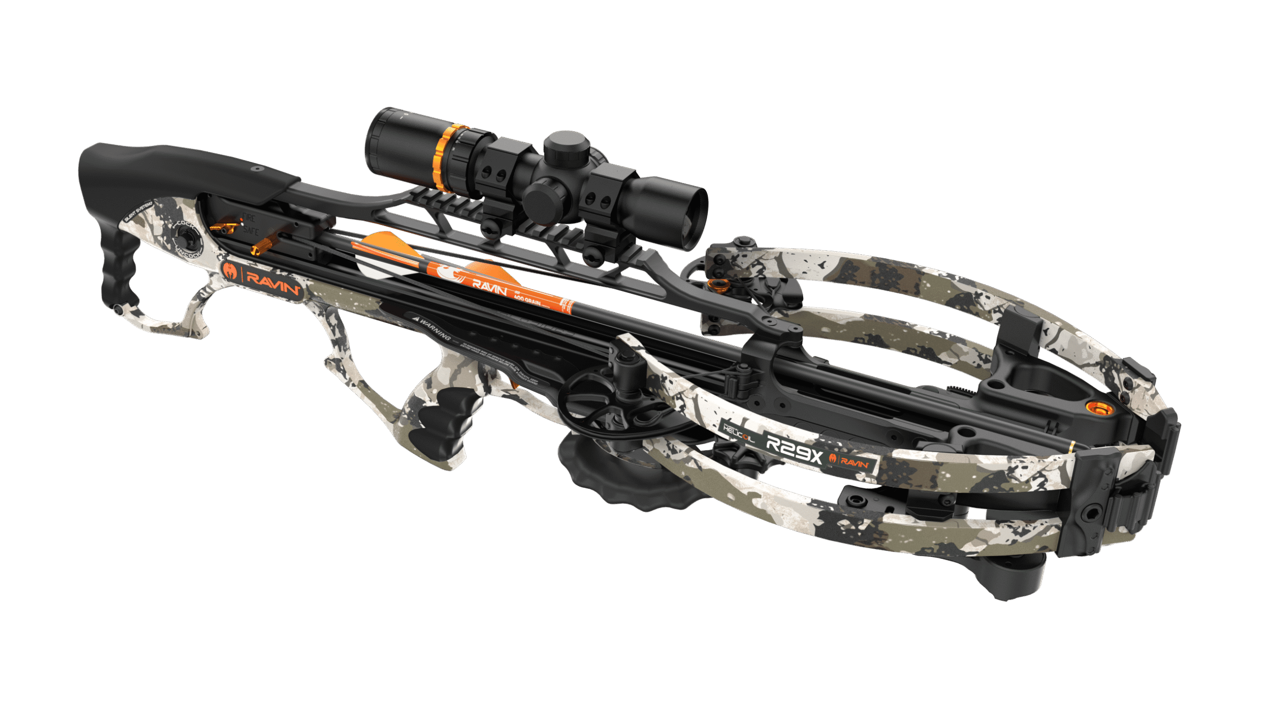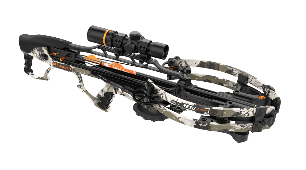 The new R29X, complete with our new fully-integrated Silent Cocking System, hits a new pinnacle of speed at an incredible 450 FPS. The length remains 29 inches, and when fully drawn, the R29X is 6 inches axle-axle and weighs a light 6.75 pounds. Including an ergonomic grip, this crossbow is easy to maneuver in tight spaces and gives hunters and shooters great control without sacrificing comfort.