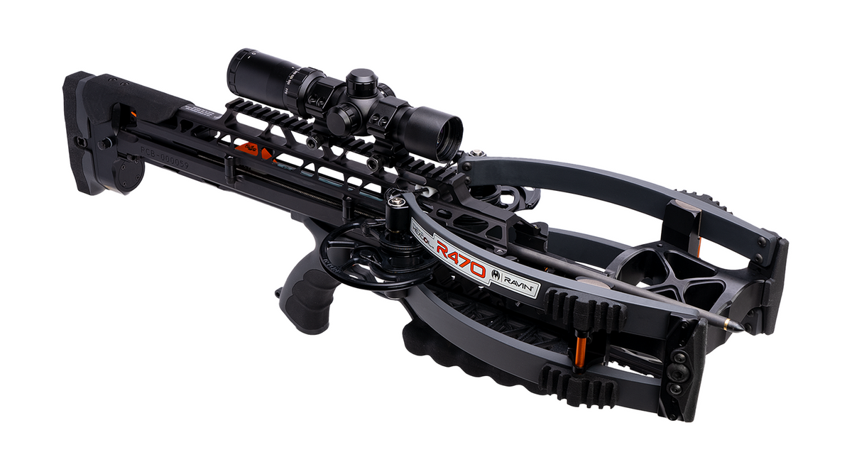 The R470, engineered as the complete crossbow package, is a feature-rich powerhouse designed to inspire confidence no matter the hunting scenario. Designed to be the most accurate, user-friendly, and high-performance crossbow on the market, the R470 combines a compact design with exceptional speed, durability, and a silent, effortless cocking system. At 26.75 inches long and 8.4 pounds, the R470 is compact and easy to handle in the field.